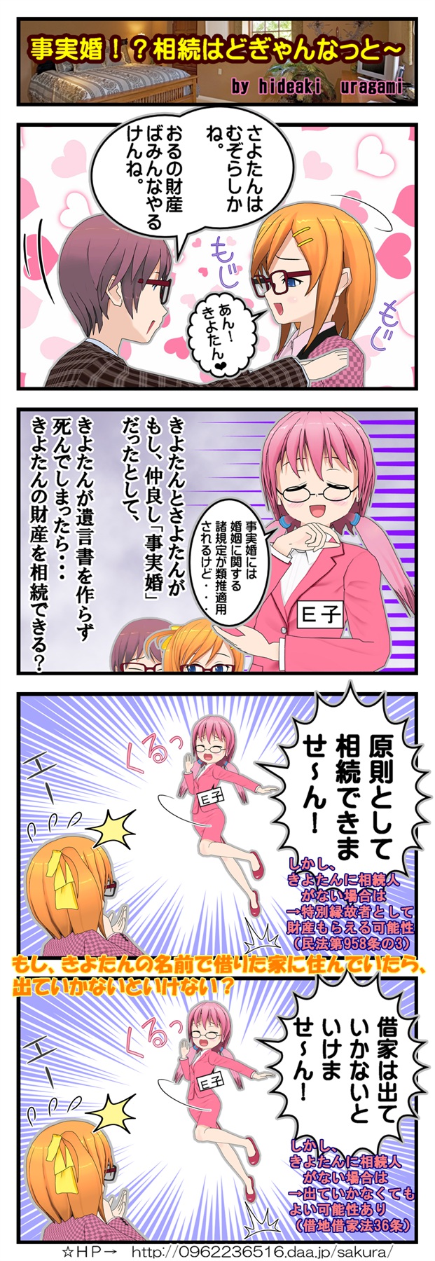 本日は、4コマ1個作りました! ツイート 本日はこれで失礼します。おやすみなさい。 昨日、柏尾さまとツイッター上の会話で出た、「事実婚」をネタに4コマを作りました。 ツイッター仲間の柏尾さま、桜下さまにいろいろとコメントをいただきながら、完成したのが、これです。 とてもありがたかったです。 引き換えに、いろいろと騒がせてしまい、この方々や他の方々に精神的にも時間的にもいらぬ負担をかけてしまいました。 とても申し訳ない気持ちです。